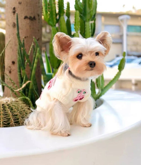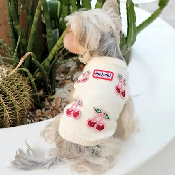 met verfijnde kersen-details voor een speelse maar luxe uitstraling. De zachte knit zit comfortabel en geeft je hond een elegante look met een modieuze twist. Perfect voor dagelijks gebruik, zowel binnen als buiten.